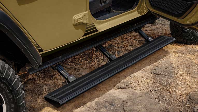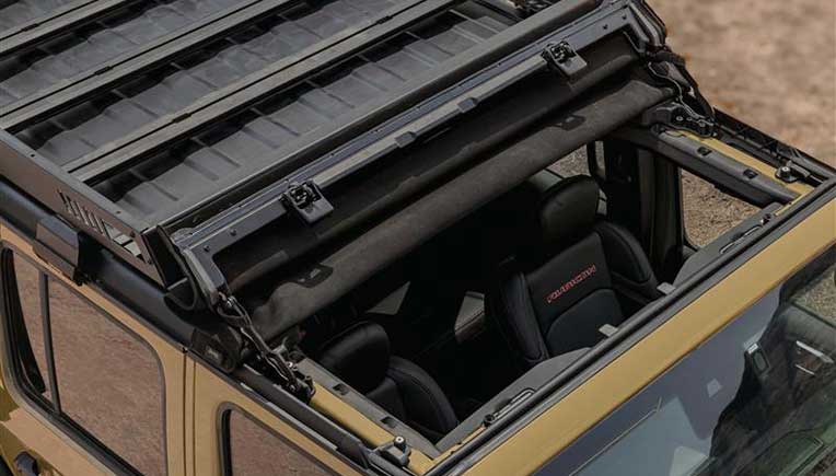 The Wrangler Willys 41 is equipped with a comprehensive set of equipment that is built for real-world adventure, including motorised side steps & an integrated digital video recorder, amongst others. The Willys 41 also has on offer an optional kit which includes a roof carrier with integrated side ladder & sun rider roof top. These enhancements amplify both the practical usability and heritage expression of the Willys 41 2.0, making each unit functionally capable and visually iconic. The optional kit is designed for those who seek greater exploration freedom, these accessories extend the Wrangler’s reputation for open air driving and gear ready preparedness.