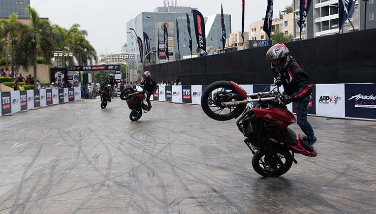 In 2017, the TVS Apache stunt team entered the record books with a non-stop 5 hour stunt show on the TVS Apache series of motorcycles. This activity was dubbed as TVS Apache Pro Performance X – a step up of the popular property – Apache Pro Performance (APP). An initiative driven by TVS Racing, APP promotes the performance prowess (in a controlled environment) of the TVS Apache RTR Series motorcycles amongst its audience and helps them connect to the essence of the brand – ‘Racing DNA Unleashed’. The event was attended by over 25,000 people.
