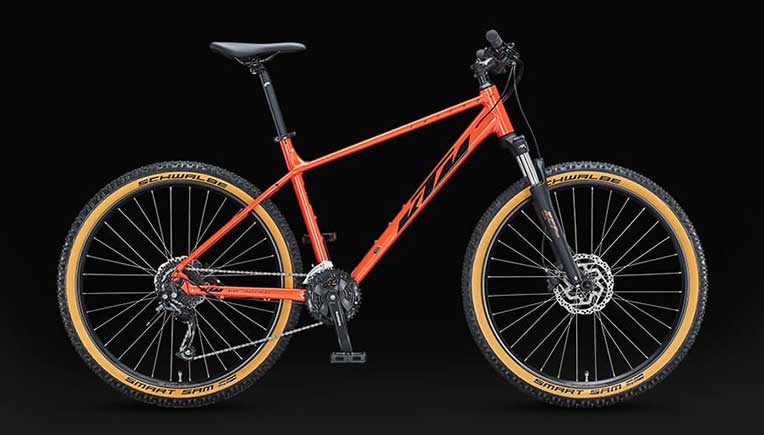 KTM Line Rizer 680 mm handlebar mainly designed for mountain biking and Schwable 27.5” tyres that will provide the much-needed grip to cyclists on any terrain.